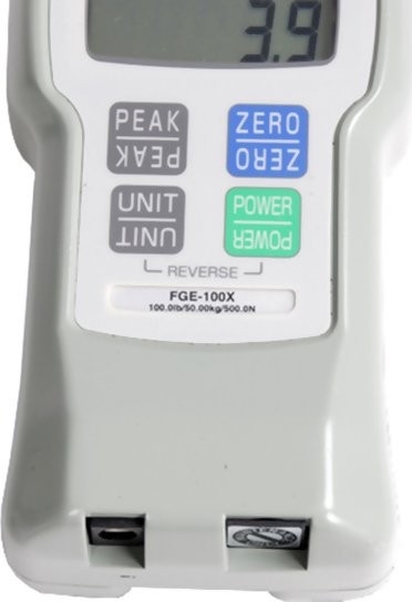 Simple one button adjustment changes units of measure, while pressing the peak button quickly produces the highest recorded value during the test. The 180° reversible display combined with the adjustable force direction and dual labeled keypad enable the Shimpo FGE-XY to excel in both compression and tension applications in any direction. Models are available from 0.5 lbs to 100 lb ranges providing a large offering for various testing requirements.