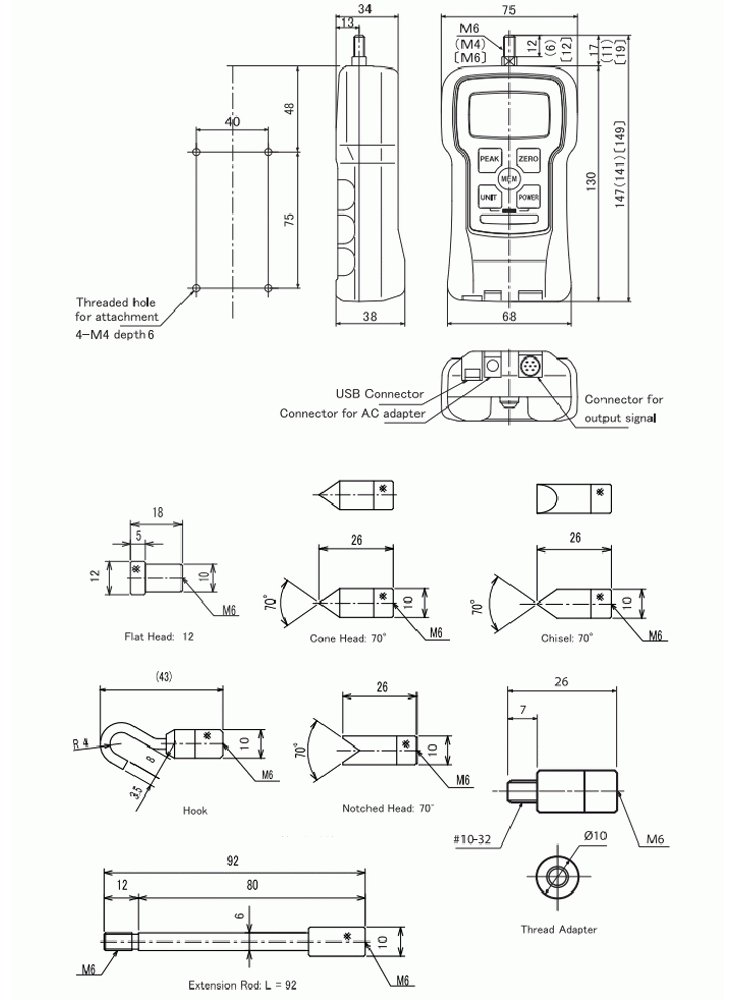 - metric thread to inch adapterand attachments (flat head, hook, chisel, notched head, cone head, extension rod)