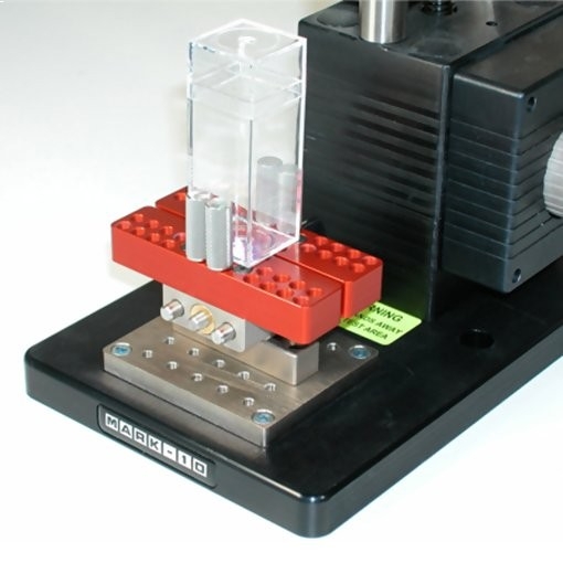The Mark-10 G1058 Universal Cap Grip is designed to effectively secure samples for torque and pull tests. Typical applications include bottle cap torque testing, lid pull-off testing, and other tests. A matrix of threaded holes allows the serrated steel posts to be placed in positions specific to the test sample, with a broad diameter range of 0.2 - 3.5 in (5.1 - 89.0 mm).