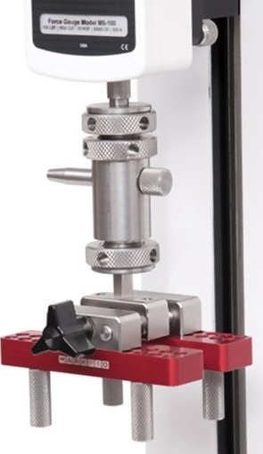 The grip has a hex tail with internal thread to permit use in a chuck or for mounting to a force gauge or force test stand. An optional adapter is available to more securely mount the G1058 grip to the base of a force test stand.