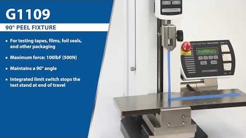 The Mark 10 G1109 Peel Fixture is designed for peel testing of tapes, films, foil seals, and other materials, per ASTM D6862 / D3330 / D903. A large, flat working table moves horizontally as the test stand’s crosshead moves up via direct cable linkage.