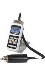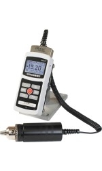 The Series-5 Advanced Digital Force Gage is designed for tension and compression force testing in quality control, manufacturing, and R&D areas. A range of capacities from 0.12 lb to 500 lb (0.5 N to 2500 N) is available to address numerous applications in the medical device, pharmaceutical, packaging, consumer products, automotive, aerospace, and other industries. The force gauges feature an industry-leading peak sampling rate of 7,000 Hz, producing accurate results even for quick-action tests. Accuracy is approximately 0.1% of full scale approximately 1 digit, and resolution is 1/5000. A large, backlit graphics LCD displays large, legible characters, while the simple menu navigation allows for quick access to the gauges many features and configurable parameters. Data can be transferred to a PC or other data collector via USB, RS-232, Mitutoyo (Digimatic), or analog outputs. On-board data memory for up to 1000 readings is included, as are statistical calculations and output to a PC. Integrated set points with indicators are ideal for pass-fail testing and for triggering external devices such as an alarm, relay, or test stand. The gauges are overload protected to 150% of capacity, and an analog load bar is shown on the display for graphical representation of applied force. The Series 5 averaging mode addresses the need to record the average force over time, useful in applications such as peel testing, while external trigger mode makes switch activation testing simple and accurate. An ergonomic aluminum design allows for hand held use or test stand mounting for more sophisticated testing requirements. The housing may be reversed in order for the load cell shaft to be oriented up or down, while the display and buttons remain upright.