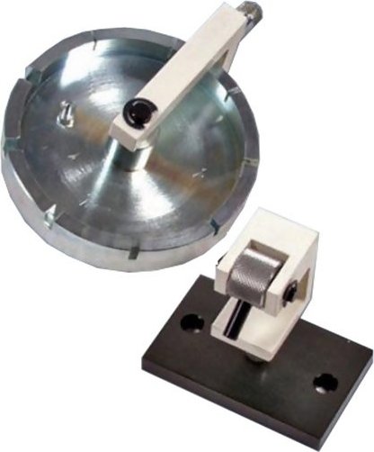 The Shimpo FG-M6WTER100 Wire Terminal Test Fixture is designed specifically to test the strength of wire/terminal connections. The upper grip consists of a self-aligning wheel with nine equally spaced slots of various terminal shank sizes; an eccentrically mounted, self-tightening bottom grip secures the wire on the other end.