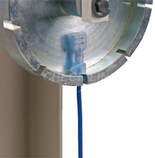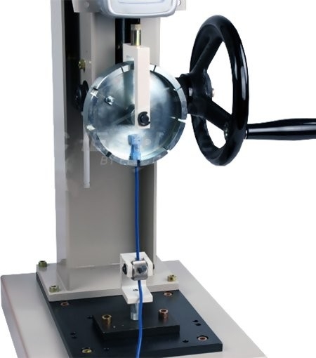 Designed specifically to test the strength of wire/terminal connections. The upper grip consists of a self-aligning wheel with nine equally spaced slots of various terminal shank sizes; an eccentrically mounted, self-tightening bottom grip secures the wire on the other end.