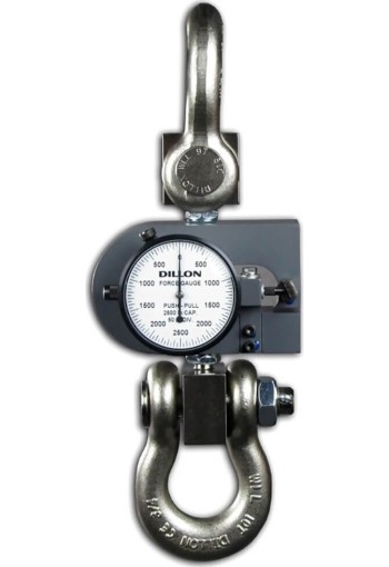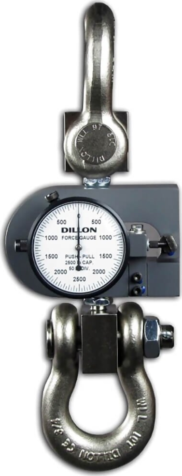 Model Dillon X-PP Tension and compression Force Gauge is in capacities up to and including 500 lb or 250 kg are supplied with a set of self-aligning spherical rod-end connectors for tension loading. Force is applied to connectors through a hardened steel pin which must be slip fit in connector holes.