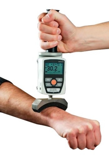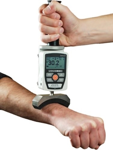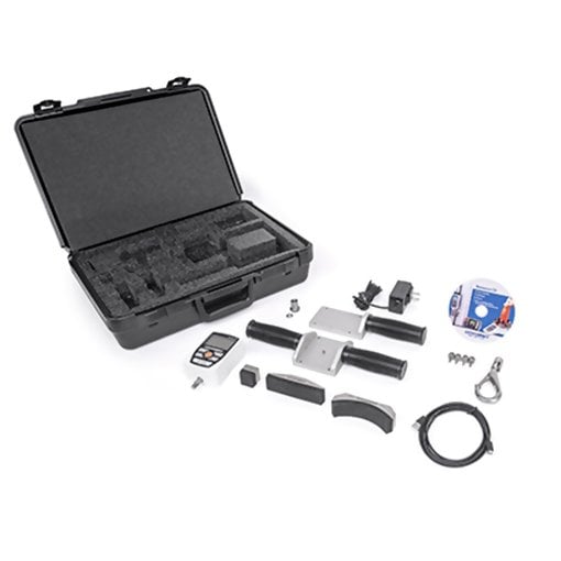 Includes a Mark-10 digital force gauge, hand grips, 3 padded attachments, and accessories