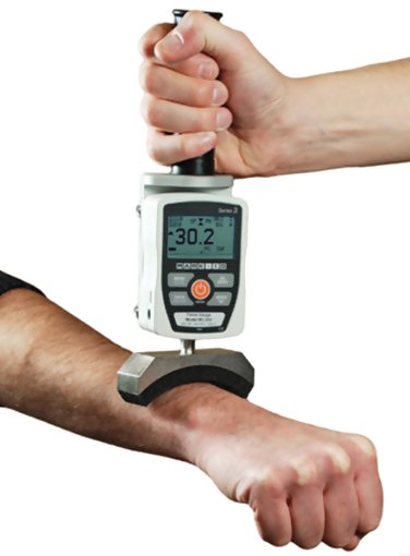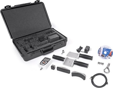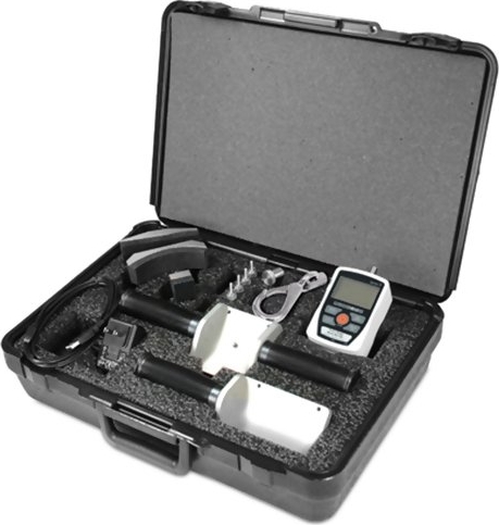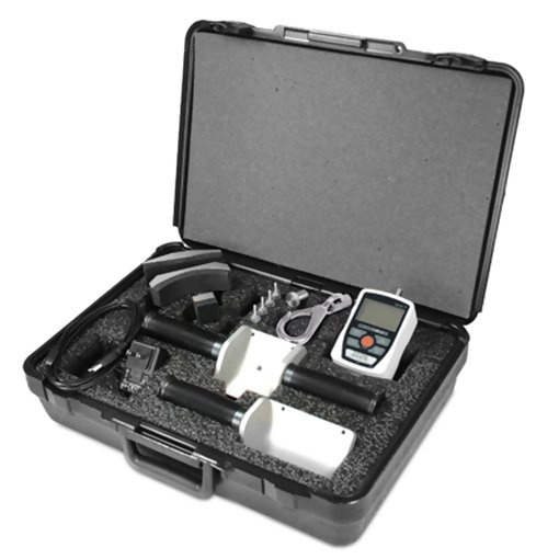 Includes a Mark-10 digital force gauge, hand grips, 3 padded attachments, and accessories