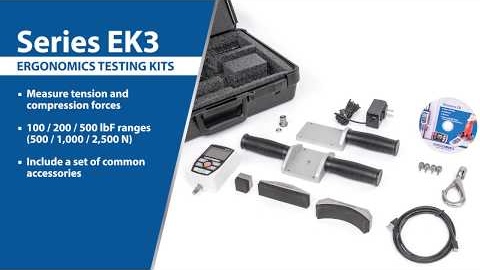 The Mark-10 EK3 Ergonomic Testing Kit makes job task analysis and ergonomics analysis simple and accurate, ideal for workplace design, physical therapy, and ergonomic studies. These kits present the ergonomist and other professionals with a simple and economical testing solution.