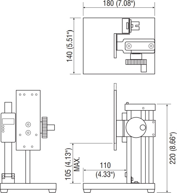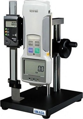 The Imada KV-11-S Hand Wheel Test Stand is designed for small deflection measurements such as membrane switches and other small micro switches. The standard model KV-11-S includes a highly accurate digital distance meter. Both models accept any force gauge with a maximum capacity of 11 lbf (5 kgf).