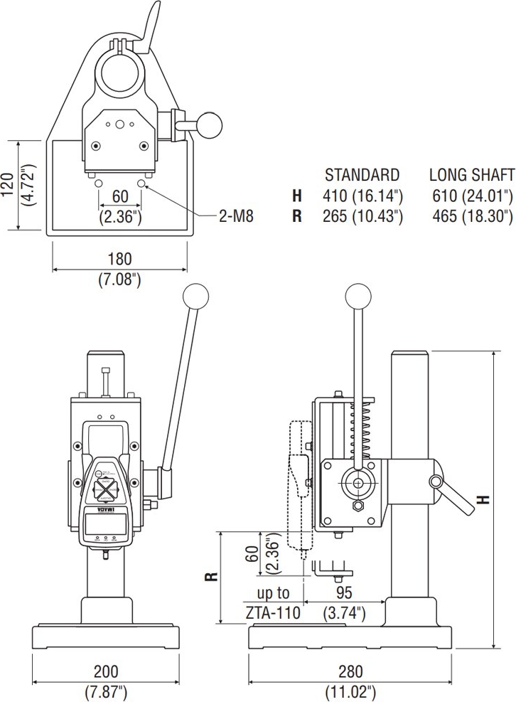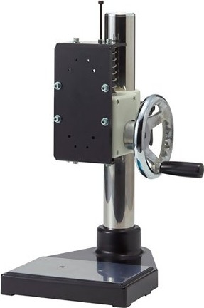 The Imada SVH-220 are compact test stands with a maximum capacity of 220 lbs. The handwheel offers precise movement that is ideal for applications requiring relatively consistent speed and maximum gauge control. The gauge remains in position when the wheel is released which allows the user to easily change samples between tests. Hand wheel operation provides repeatable test results from sample to sample. The stroke can be adjusted with a mechanical limit. The Imada SVH-220 accommodate any of our standard range mechanical or digital force gauges. SVH-220 can be rotated 180 degrees around the column axis so for use without the base interfering on the underside. When located at the edge of workbench, the available working area is unlimited. |