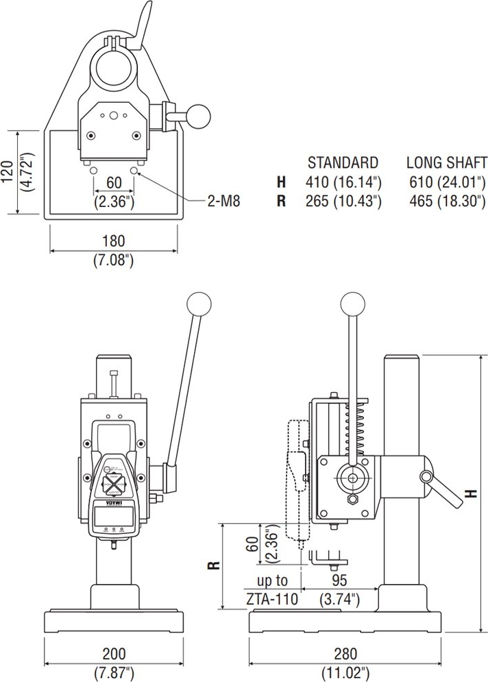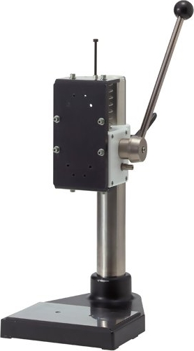 Imada SVL-220 Manual Lever Test Stands provide quick, consistent testing. Both compression and tension tests can be performed with a simple downward stroke of the lever. The test stand is designed to provide a simple move to change from compression to tension mode. Return springs reset the lever in compression mode and gravity does the work in tension mode. The stroke can be adjusted with a mechanical limit. The stands accommodate any of the standard range mechanical or digital force gauges and can be equipped with a precision digital distance meter. SVL-220 is perfect for compression and tension applications where rapid action is desired. Imada SVL-220 Manual Lever Test Stand can be rotated 180 degrees around the column axis so for use without the base interfering on the underside. When located at the edge of workbench, the available working area is unlimited. (SVH-220 show below for illustrative purpose). |