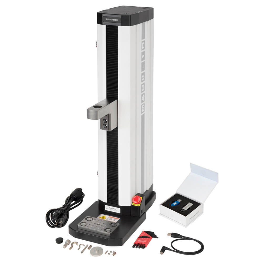 The Mark-10 F105 / F305 / F505 / F505H Series-F Advanced Force Test Stands is designed for tension and compression force testing applications, with force capacities up to 500 lbF (2.2 kN). Select from vertical or horizontal orientations, along with a broad range of force sensor capacities and an expansive array of grips and fixtures. Set up tests, record data, and analyze data via IntelliMESUR® software. From basic tests to multi-step sequencing, IntelliMESUR® is fully integrated with Series F systems. Select from a pre-configured tablet control panel or standalone software for your own Windows device.
