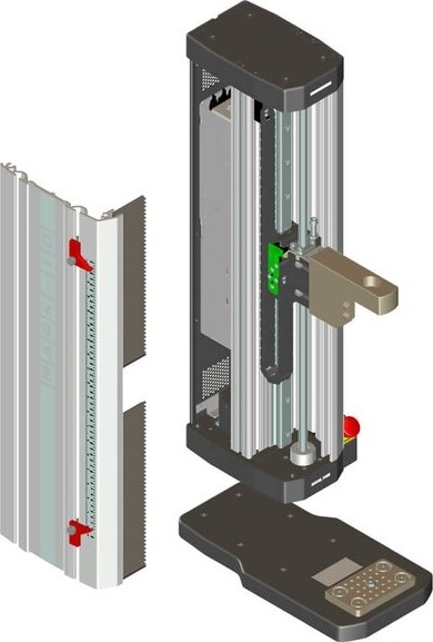Stepper motors and controllers drive a ball screw and linear guideway for smooth, quiet operation, with virtually no speed variation under load.