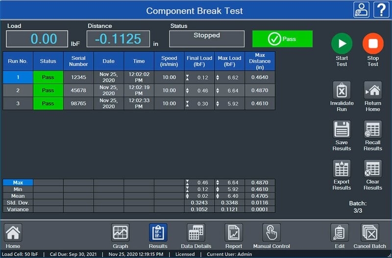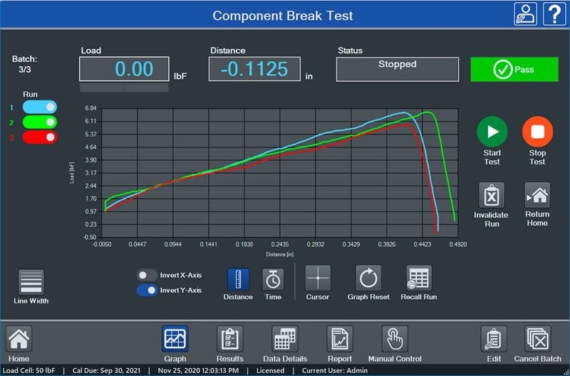 Run individual runs or batches, and view data in graphical format or results tables. Save or export data as needed, or generate a report.