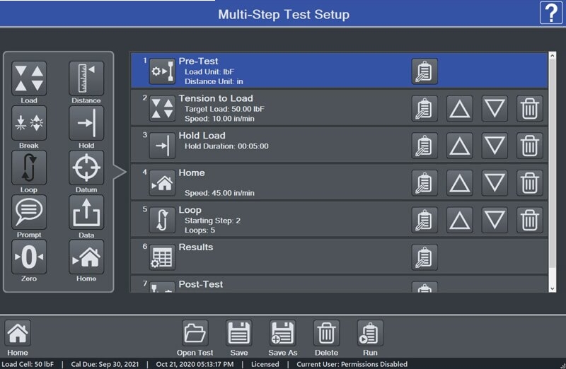 Multi-step tests - Building upon basic test wizards, easily incorporate any combination of steps, with the ability to loop a sequence of steps. Select from: