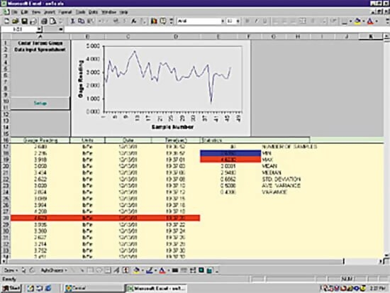 If desired, the entire stack can be saved to disk, analyzed or cleared. Because all data is entered directly into a standard Excel spreadsheet, you are virtually unlimited in your ability to analyze your torque tester data using all of the powerful tools available in Excel.
