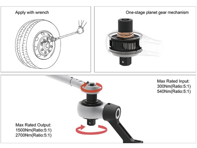 | Model | Output Nm | Output lb-ft | Input Drive | Output Drive | Ratio |