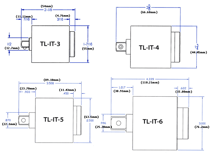 The Seekonk TL-IT Inline Torque Limiter controls torquing through a cam-over clutch action. No chance for error because preset torquing action prevents overtightening, even with continued turning or differing tool lengths and adapters. For use with manual and non-impact power tools. Laser marked, color coded ID ring prevents confusion when multiple tools are used. Torques right or left, but is certified to +/- 4% accuracy in one direction only. Field recalibration not recommended.