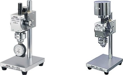 The Asker CL-150 Constant Load Durometer Stand eliminates different speed and load variables which occur when testing samples with a hand-held durometer. The test speed and load the durometer applies to rubber and plastic samples are kep t constant with a pneumatic damper and a standard weight. In addition, our unique flexible coupling enables the presser foot of the durometer to make perfect contact even on samples with inclined surfaces. A printing roller durometer application can be setup using our special adapter.