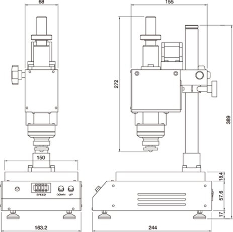 The Asker CLE-150 motorized constant speed/load stand eliminates speed and load variables which occur when hand-testing samples with a durometer. Select speeds from 0.1~19.9 mm/sec in .1 mm increments.