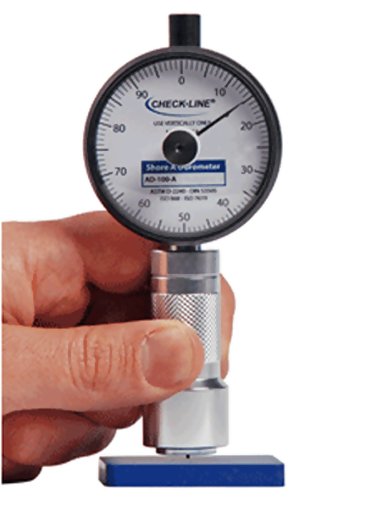 3. Test Coupons or test blocks (rubber or plastic) should not be used for calibration verification. As all samples are subject to characteristic changes over time along with temperature and lighting conditions, the rated Shore value when supplied as new can and will vary with age. Proper calibration verification requires independent confirmation of the internal spring forces along with the verification of the pin displacement vs. the indicated value on the scale.