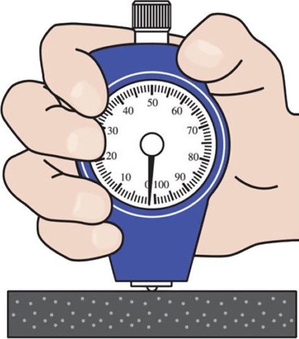 As the durometer is pressed against the sample, the material resistance force and indentor spring load balance. The depth of the indentor is measured, which provides a measure of the material’s hardness. Values are based upon a 100 point scale (accuracy ±1 point).