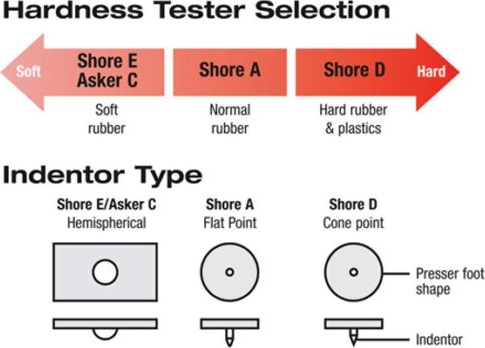 Hardness is an essential characteristic of rubber, elastomers and plastic products. Select the optimum durometer type based upon material hardness. E2 models are available in Durometer Types: Shore A, D, E and Asker C Hardness.