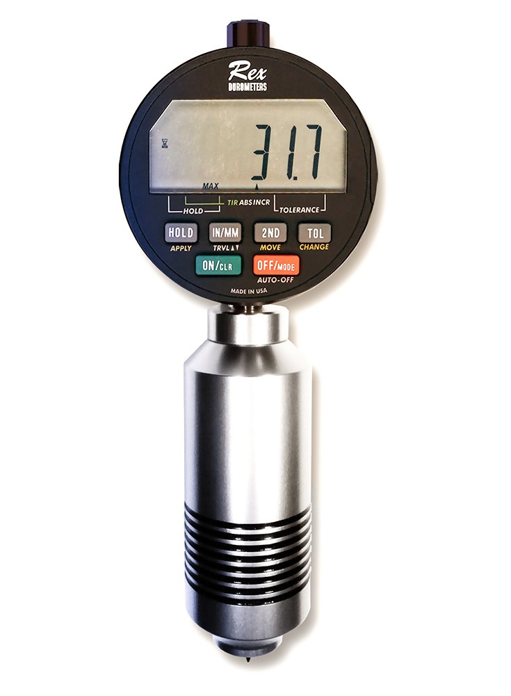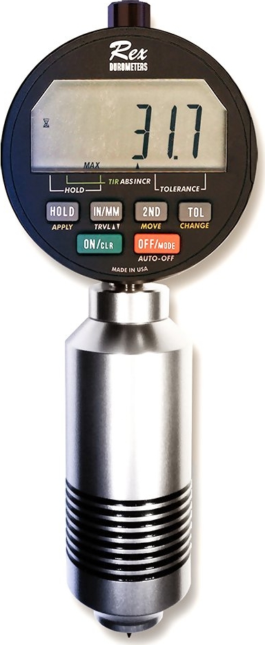 The Rex 4000 Max Hand Durometer RX-4000 is the perfect instrument for use on the production floor or in the lab for measuring the hardness (Durometer) of rubber and plastic parts. It features an over-sized 18mm footer, large LCD display with USB output. Available models include RX-4000-A for Rubber Parts and RX-4000-D for plastic parts.