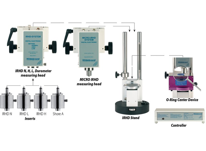 The Hildebrand IRHD-MACRO Macro IRHD Hardness Tester conducts hardness measurements with use of an insert that can be inserted without the use of tools. Different inserts are available to fulfill the requirements of your specific application: 1.0 mm, 2.5 mm, 5.0 mm and Durometer Shore A. The electronic identification in each insert ensures the electronic identification. Each insert has its own corresponding software, which starts up automatically. Operator errors are prevented!