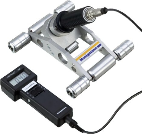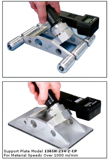 The Honigmann 136-2 Web Tension Meter features a spring-loaded handle, which eliminates errors, caused by uneven pressure applied by operators. It makes taking measurements as simple as pressing the sensor gently on the web until the handle reached the mechanical stop. Ball-bearing mounted rollers support the measurement head at speeds up to 1000 m/min. For higher speeds, a low friction, ceramic-coated stabilizing plate is offered.