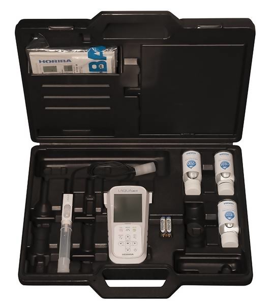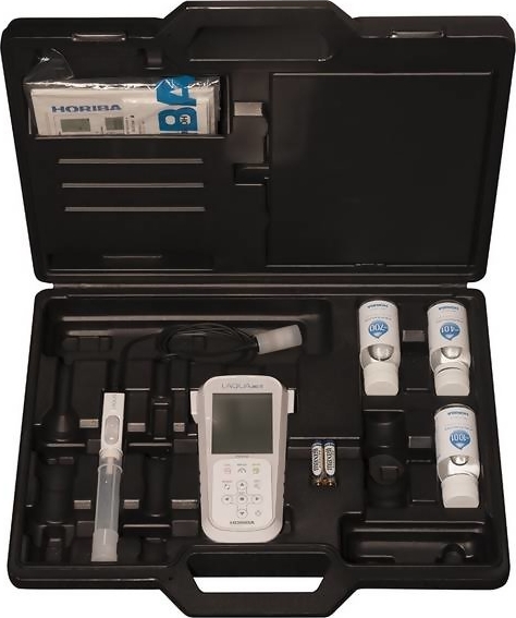 The Horiba LAQUAact pH-110K Portable Water Quality pH / ORP Meter Kit 3999960167 is designed for use with one hand and with an IP67 waterproof rating and shock-resistant casing, the pH-110 meter can be used for long periods, even in dark places, making it ideal for field measurements in rivers and lakes.