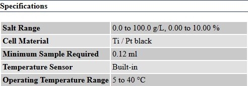 | Salt Range | 0.0 to 100.0 g/L, 0.00 to 10.00 % |