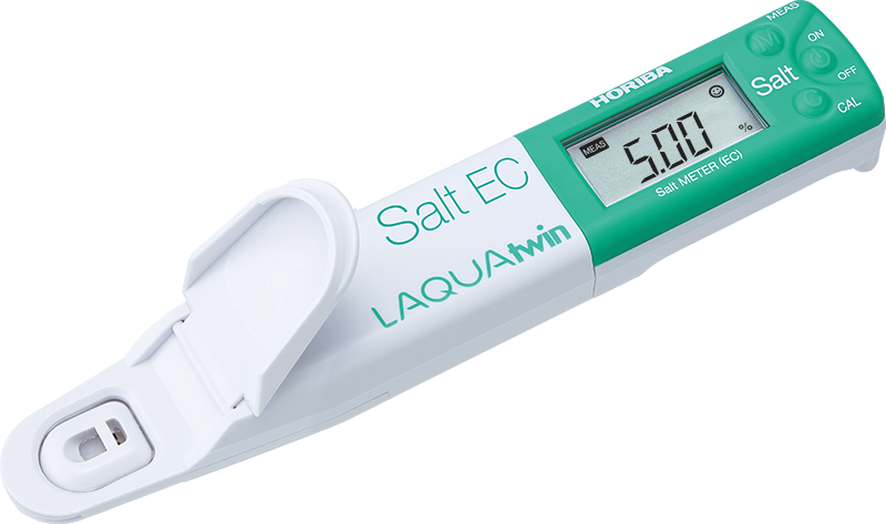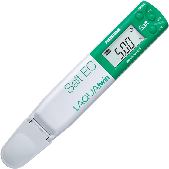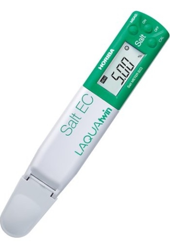 The Horiba LAQUAtwin Salt-11 Compact Salt Meter is the only pocket meter that directly measures conductivity in 0.12ml sample and converts it into salinity or salt concentration.No need for a beaker to calibrate the meter or measure a sample. Just place few drops of the standard or sample onto the Horiba LAQUAtwin Salt-11 sensor. This procedure saves you time and prevents wasting your precious sample.