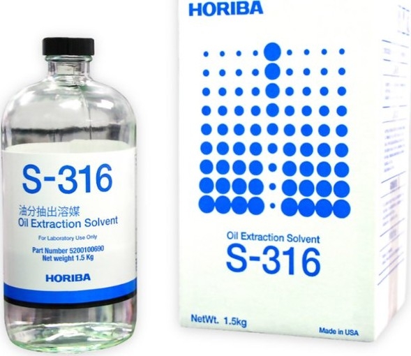 Extraction solvent used with HORIBA Oil in Water analyzers OCMA (models, OCMA-310, OCMA-550, and OCMA-500). The solvent Horiba S-316 is used to extract the oil and grease (Total Hydrocarbons) from a water based sample as well as to extract hydrocarbons from metal parts (for contamination check).