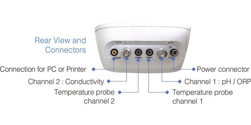 • Automatic pH calibration using USA or NIST buffers (Up to 5) and DIN (Up to 6)