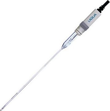 The liquid junction of the Horiba Laqua 6261-10C glass-body, refillable pH electrode is located on the flat pH sensing membrane. Perfect for measuring samples in shallow containers (e.g., petri dishes) and gelatinous samples (e.g., nutrient agar). For pH measurement of meat, skin, leather, paper, leaves and cloth.