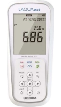 - The Horiba LAQUAact Portable pH/ORP/ION Meter D-73 No. 3200575161 Dual channel meter with 2 ports for pH or ORP measurement on channel one and an ion measurement on channel two. Serial port for data output. 1000 data set memory, backlight (Electrode recommendation: Model 9625-10D for pH and/or 9300-10D for ORP and any available combination type ion electrode)