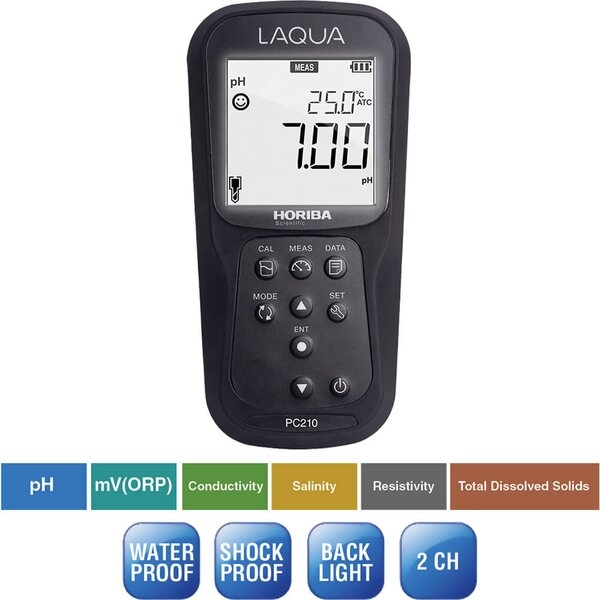 - Horiba LAQUA PC210 Handheld pH / ORP / Conductivity / Resistivity / Total Dissolved Solids / Salinity / Temperature Meter