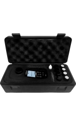 The Horiba LAQUA TB220-K Portable Turbidity Meter Kit, # 3201073569 is a waterproof turbidity portable meter with backlit LCD and shockproof, scratch-resistant, non-slip casing. Packaged with 0.02, 20, 100, and 800 NTU Styrene Divinylbenzene (SDVB) polymer solution standards, 4 sample vials, and a set of silicone oil and cloth in durable carrying case for routine water quality testing.