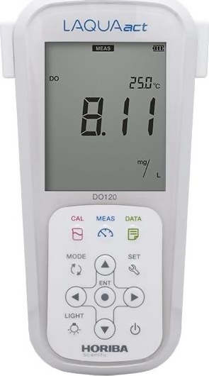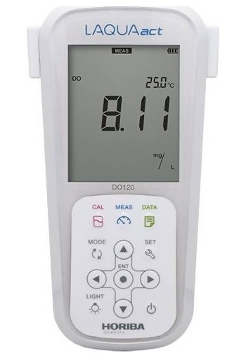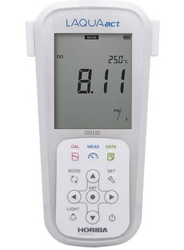 The Horiba LAQUAact DO-120 Portable Water Quality Dissolved Oxygen Meter is designed for use with one hand and with an IP67 waterproof rating and shock-resistant casing. The DO-120 meter can be used for long periods, even in dark places, making it ideal for field measurements in rivers and lakes.