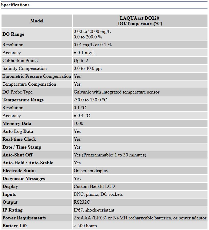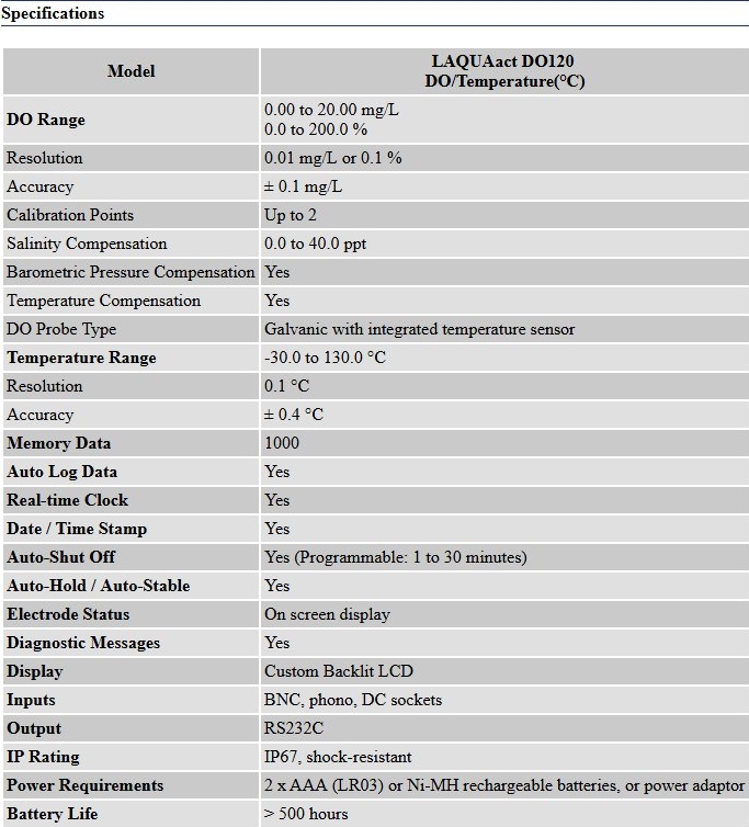 ModelLAQUAact DO120 DO/Temperature(°C)