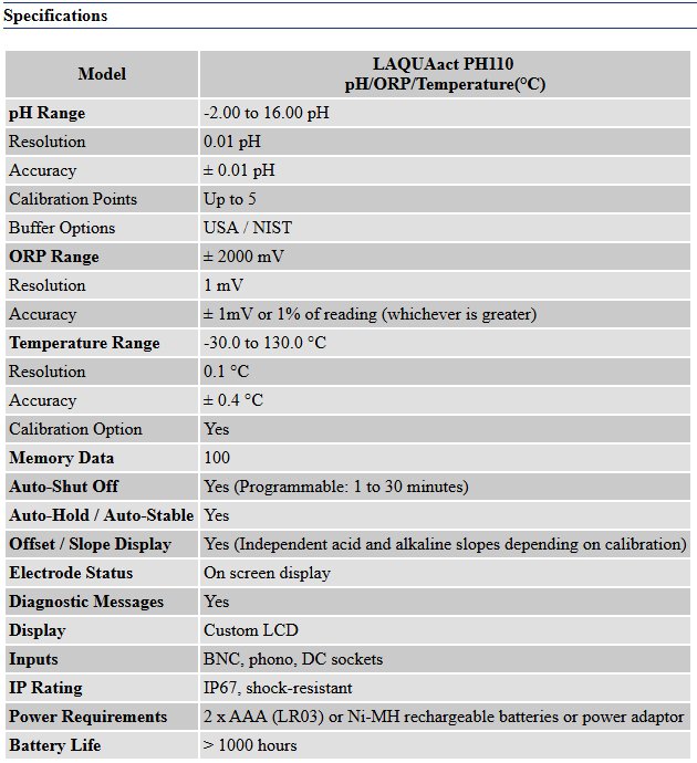 - Horiba LAQUAact pH-110 Portable Water Quality pH / ORP Meter
