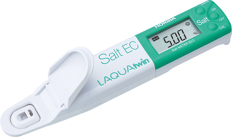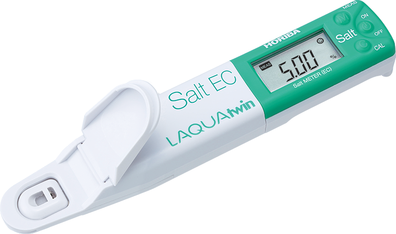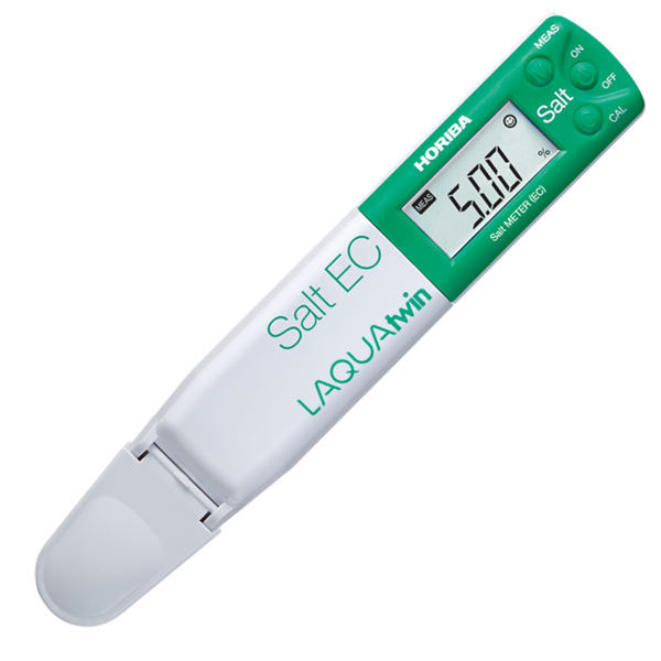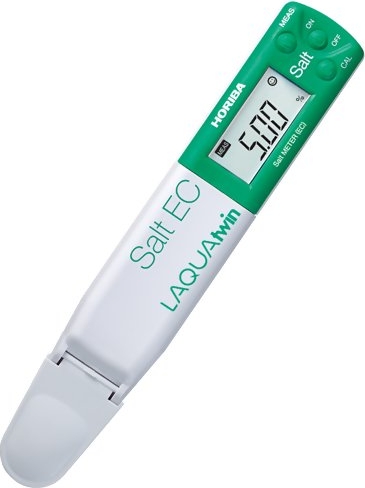 The Horiba LAQUAtwin Salt-11 Compact Salt Meter is the only pocket meter that directly measures conductivity in 0.12ml sample and converts it into salinity or salt concentration.No need for a beaker to calibrate the meter or measure a sample. Just place few drops of the standard or sample onto the Horiba LAQUAtwin Salt-11 sensor. This procedure saves you time and prevents wasting your precious sample.