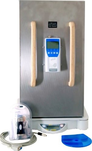 - Bulk density compensation by using a precision electronic balance (scale)