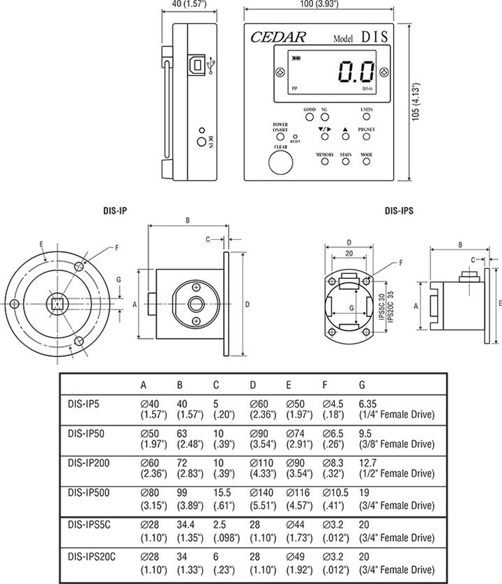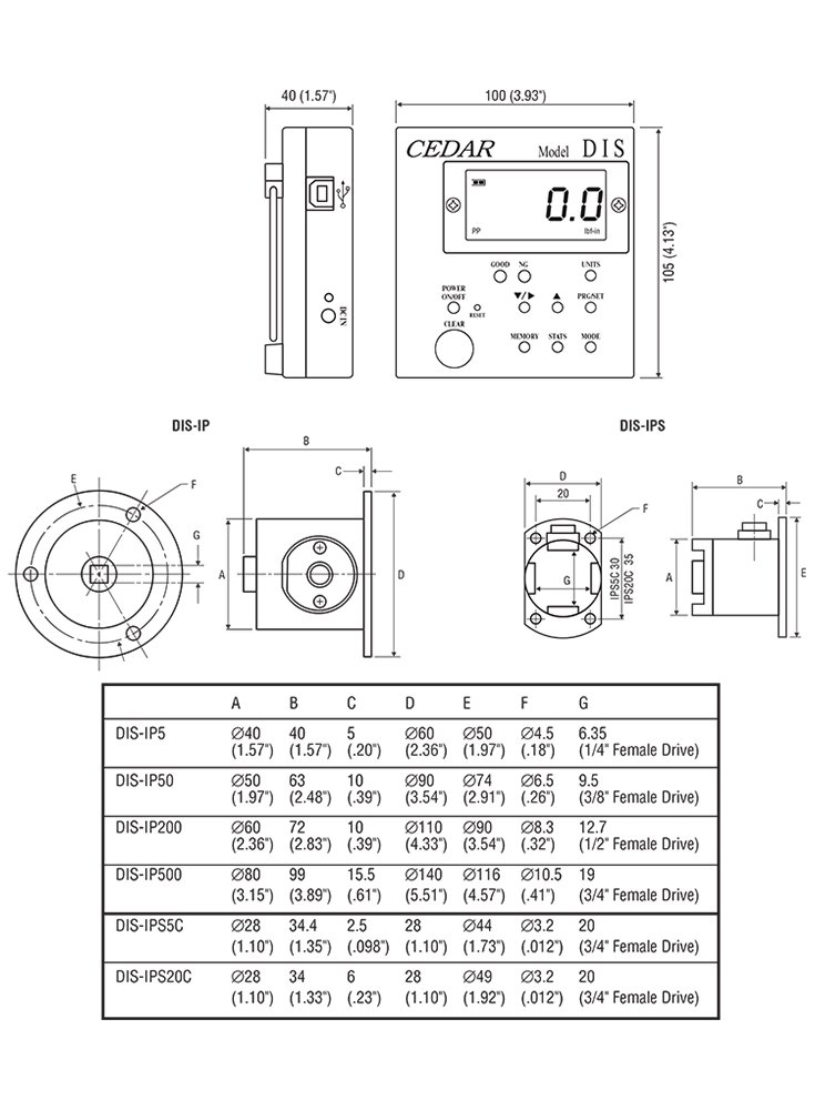 DIS-IP200 20 - 1740 lbf-in | 2.0 - 145 lbf-ft | 0.20 - 20.00 kgf-cm | 2.0 - 200.0 N-m 1/2"