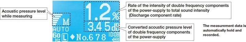 | Data memory | Discharge component rate and converted value in acoustic pressure Max. 500 data