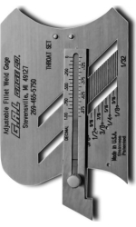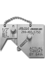 The G.A.L. Gage Co. Cat # 3 Adjustable Fillet Weld Gauge GAL-3 is an easy to use instrument. The G.A.L. Gage Co. Cat # 3 Adjustable Fillet Weld Gauge GAL-3 is designed so that just one gauge could be used to check 15 different sizes of fillet welds, equal or unequal in size. With this gauge, you can measure: Fillet weld leg lengths from 1/8 inch to 1 inch in 1/32 inch increments, Unequal legged fillet welds, Desired throat thickness of fillet welds.
