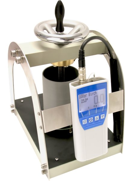 Measuring Range: 15 - 60% The Humimeter BLH Moisture Meter for Wood Shavings is specifically designed for the accurate measurement of Moisture Content of wood shavings. The BLH provides a measuring resolution of 0.1% and is supplied with five (5) built in calibrations for the following species of wood types: Beech, Birch, Spruce, Pine, Poplar and Oak. The Humimeter BLH Moisture Meter for Wood Shavings is supplied with built-in memory for 10,000 values and features automatic temperature compensation for the highest possible accuracy. It also includes USB Output and is supplied with a data transfer cable and free PC-Software. A hand-wheel system is provided to compress the 400 ml sample into the measuring container to get highly repeatable results which is shown on the over-sized LED display in seconds. The BLH is battery powered using four (4) AA-Batteries providing maximum convenience and portability for use everywhere. It is constructed for trouble-free use even in the toughest field applications.