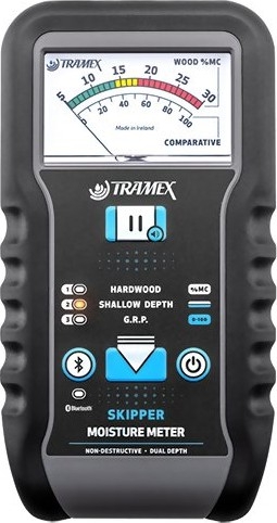 The Tramex MEX5 Moisture Encounter and Humidity Meter has a built-in hygrometer and infrared surface thermometer for testing ambient relative humidity, temperature and dew point, and surface temperature. These can be used to identify detrimental condensation conditions conducive to microbial mold growth can also be identified. The heavyduty handheld pin-probe measures moisture content in wood and drywall, and WME readings for other materials.