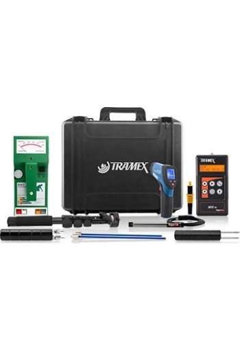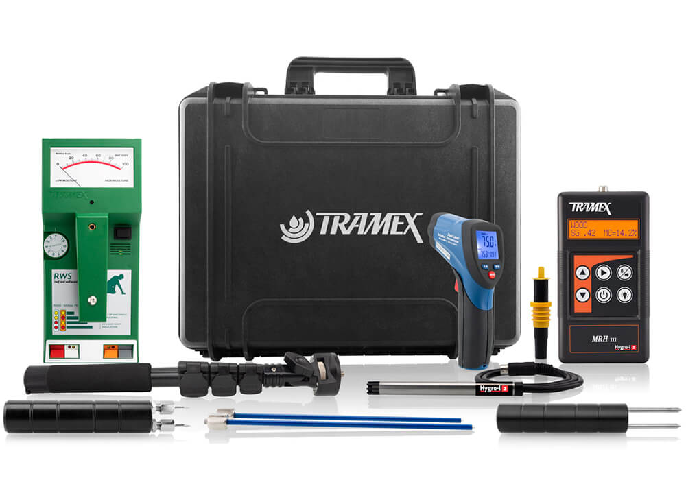 The Building Survey Master Kit features the multifunctional Tramex MRH3 digital moisture meter allowing for non-invasive testing of moisture conditions in numerous building materials such as drywall, wood, plaster, brick, ceramic tiles, resilient flooring, laminates and roofing
